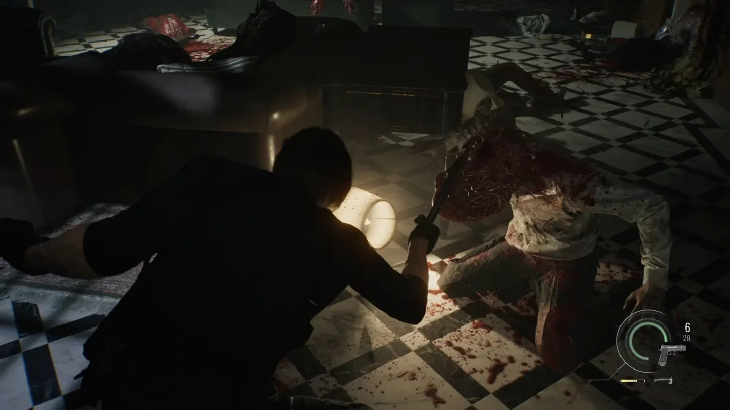 - Come Leon: il secondo pezzo appare in soffitta. Usa le scale per restare mobile e interagire con gli oggetti nell’ambiente per bloccargli il percorso. Il tuo fucile a pompa MSBG 500 appena acquisito è l’ideale per questo combattimento.
