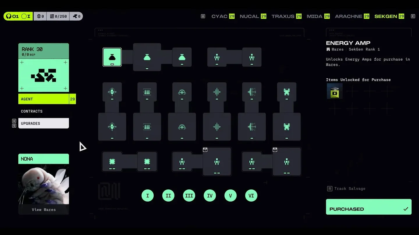 CyberAcme è il luogo in cui la maggior parte dei giocatori dovrebbe spendere le energie della prima stagione. I suoi contratti sono ampi e indulgenti, incoraggiando il gioco normale piuttosto che la specializzazione ad alto rischio. Gli aggiornamenti (raffreddamenti delle abilità più rapidi, inventario più ampio, affidabilità generale delle statistiche) non vincono i singoli combattimenti da soli, ma rendono ogni singolo combattimento leggermente più semplice. Questa riduzione dell’attrito si estende a dozzine di corse.