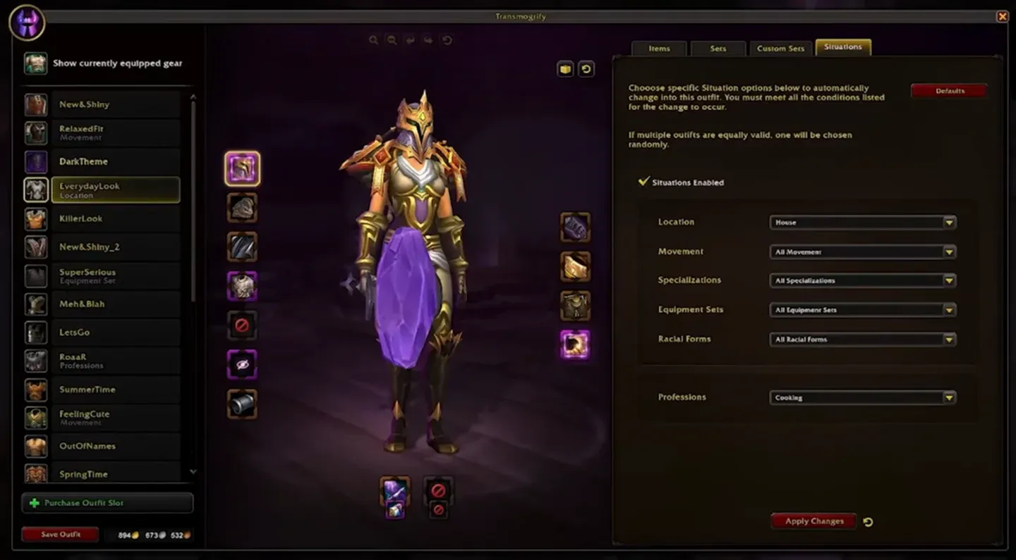 La personalizzazione dell’alloggiamento è sorprendentemente profonda. Puoi costruire i tuoi interni in modalità Base o Avanzata, ridimensionare e posizionare liberamente gli elementi decorativi e applicare la tintura ai pezzi selezionati. I modelli esterni sono disponibili in quattro versioni al momento del lancio: Elfo del Sangue, Elfo della Notte, Orco e Umano, ciascuno con opzioni per finestre, facciate e torri diverse.