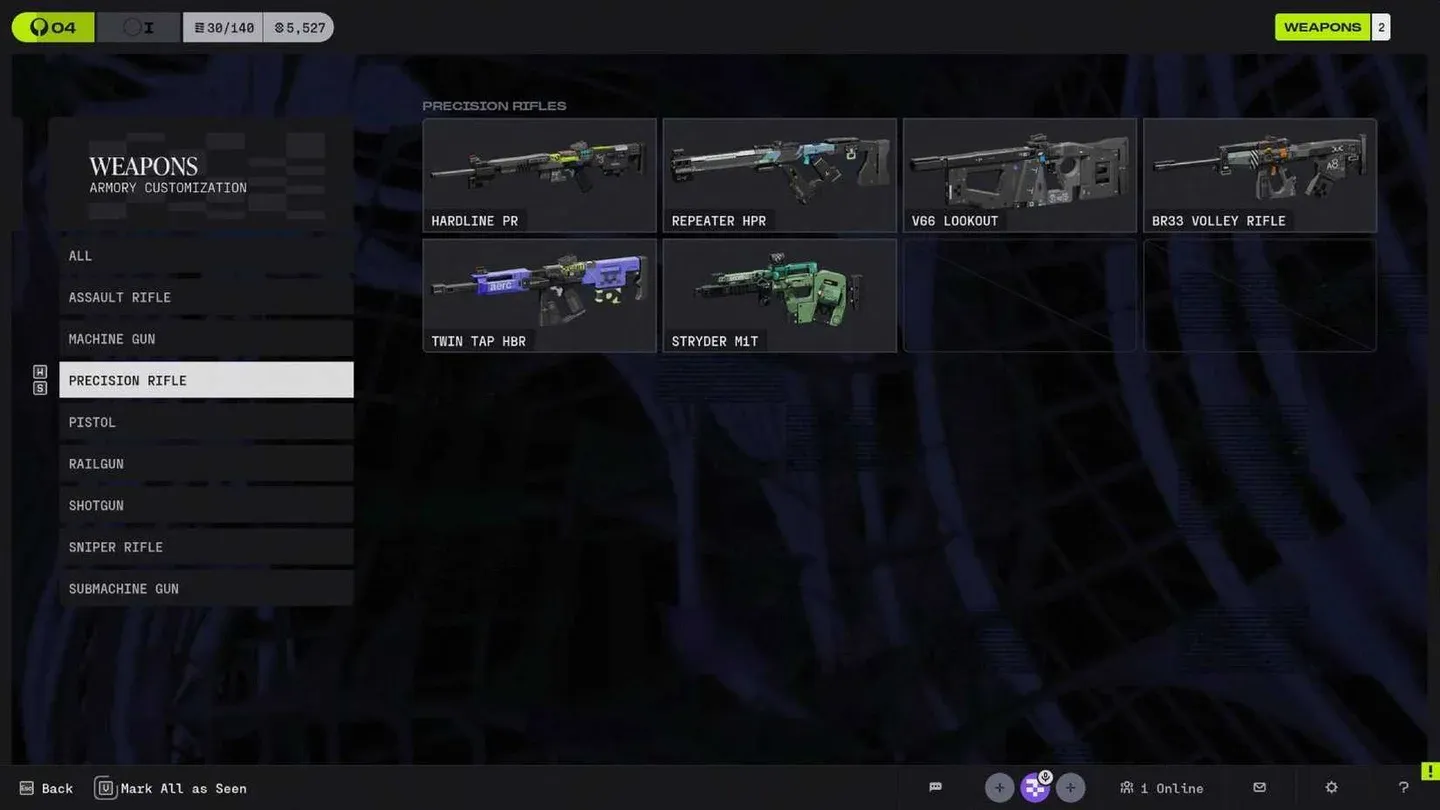 L’Hardline PR spara una raffica di tre colpi e si posiziona tra un fucile d’assalto e un fucile di precisione. Si comporta bene nei combattimenti verticali e nei lunghi corridoi. Richiede pratica per essere utilizzato in modo efficace, ma può controllare le corsie a medio e lungo raggio.