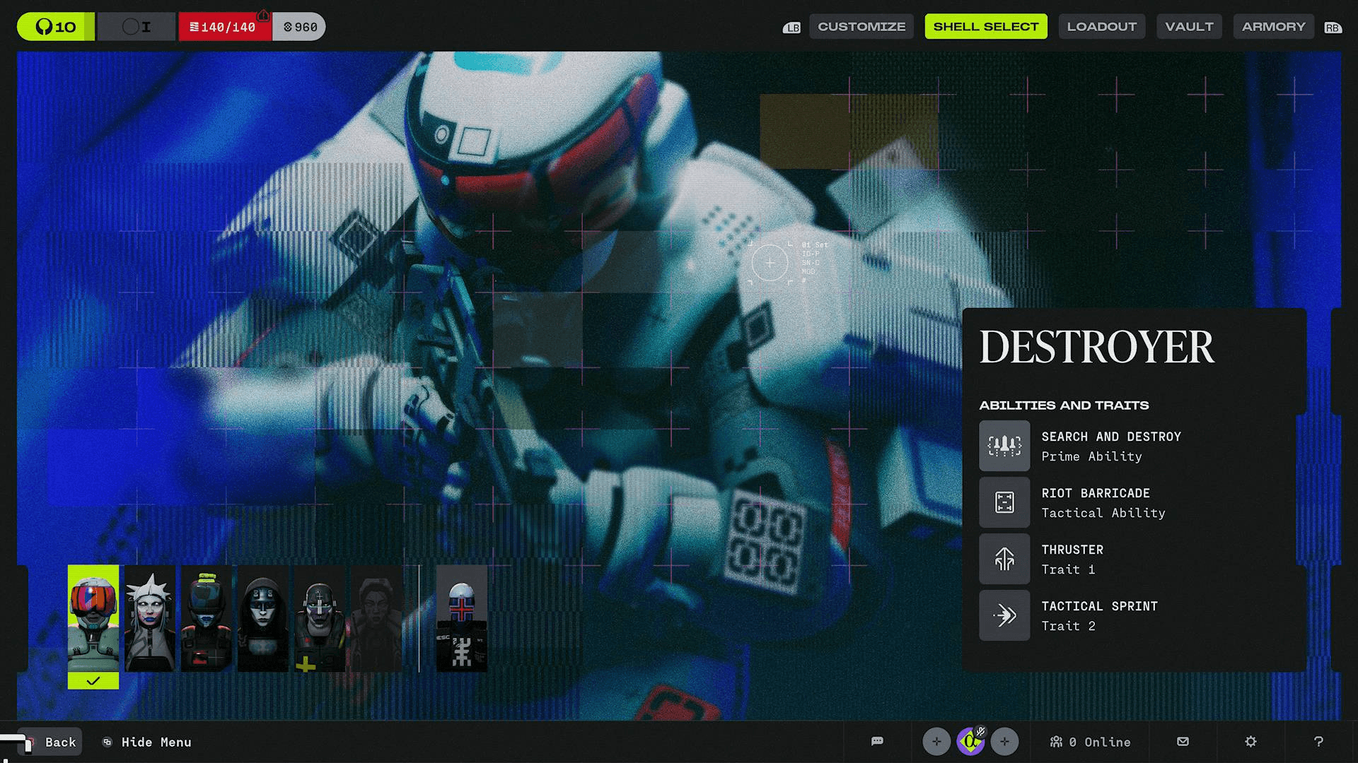 Il Distruttore Shell in Marathon è pensato per i giocatori che vogliono affrontare i combattimenti a testa alta. È uno specialista del combattimento con strumenti sia offensivi che difensivi, progettati per fare pressione sui nemici e controllare gli scontri. Invece di sgattaiolare in giro o esplorare a distanza, il Distruttore si spinge in avanti e forza l’azione.