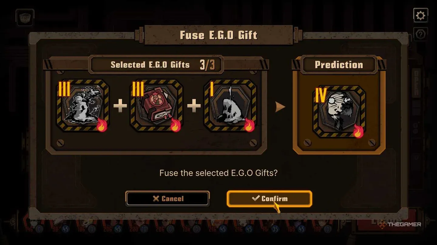 EGO Gift Fusion ti consente di unire due regali compatibili in una versione più potente e aggiornata. Il processo utilizza un dono primario (quello che desideri conservare e migliorare) e un dono secondario come materiale di fusione, consumando valuta di gioco e nuclei di fusione nel processo.