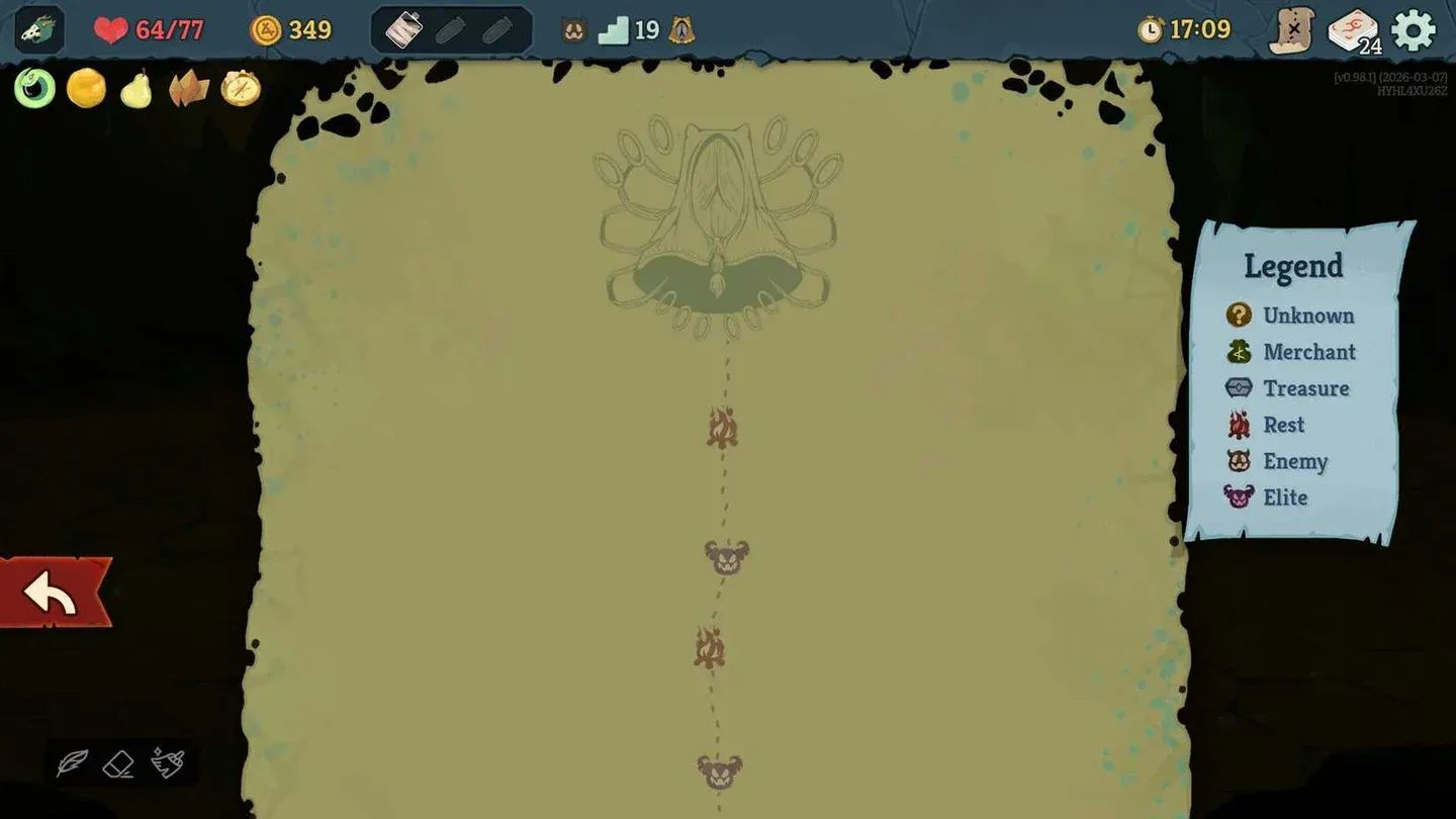 Percorrere la mappa con poca salute apre opzioni. I Siti di riposo possono essere utilizzati per Punire (potenziare una carta) invece che per curare, il che spesso produce più valore degli HP ripristinati. Gli eventi che costano salute in cambio di ricompense migliori diventano scelte praticabili quando ti senti a tuo agio nell’accettare lo scambio.
