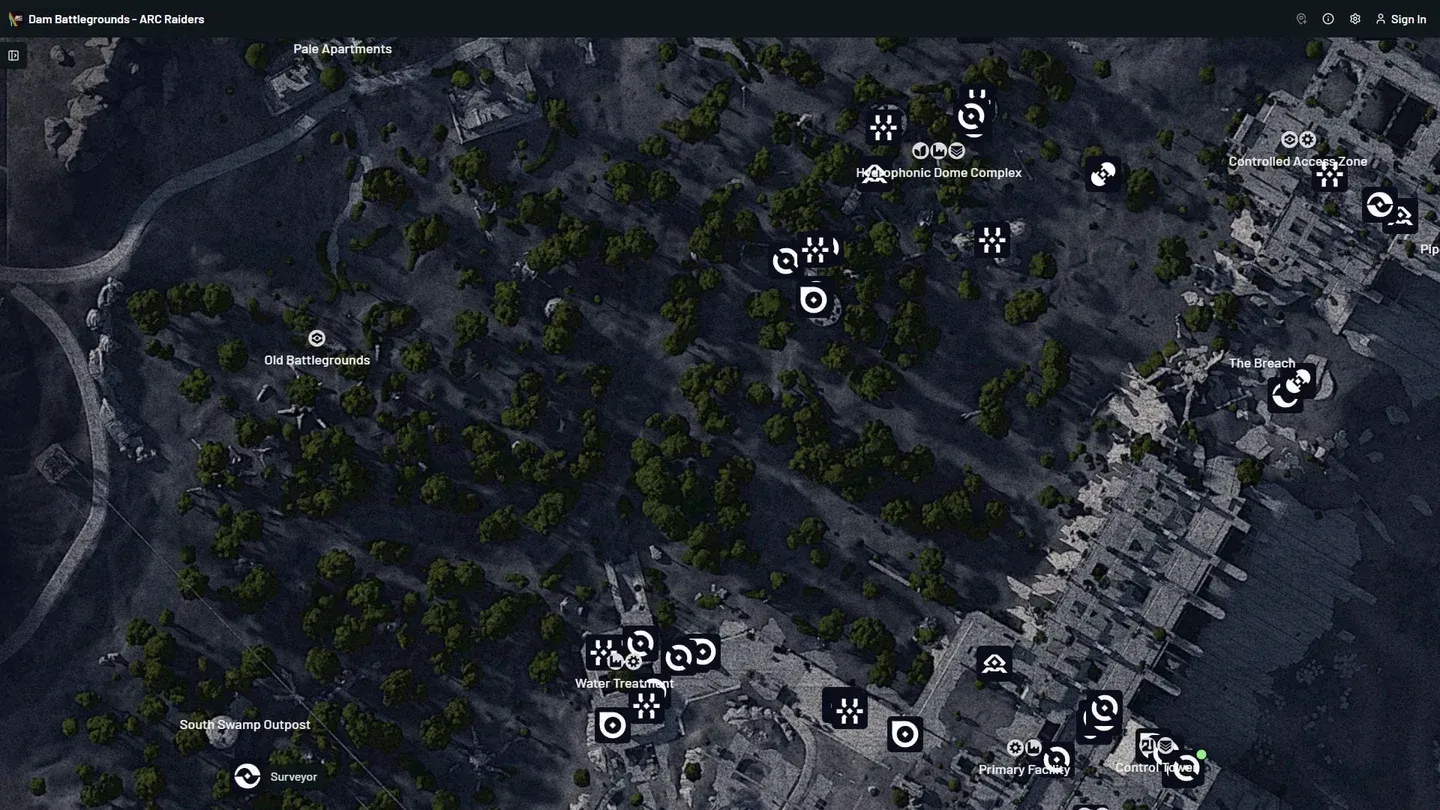 - Entra nei campi di battaglia della diga durante il raid notturno e dirigiti al complesso della cupola idroponica. Questo completa contemporaneamente sia la prova Swamp ARC che la prova Rocketeers/Leapers/Bastions.