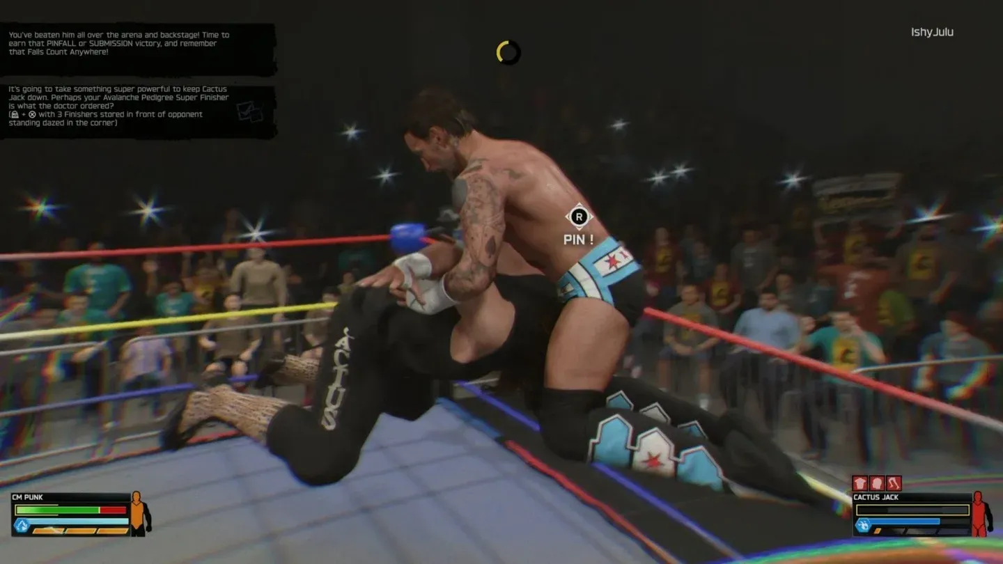 Il tuo avversario entrerà automaticamente anche nel minigioco I Quit ogni volta che è bloccato in una sottomissione, quindi le sottomissioni sono doppiamente utili in questo tipo di partita.