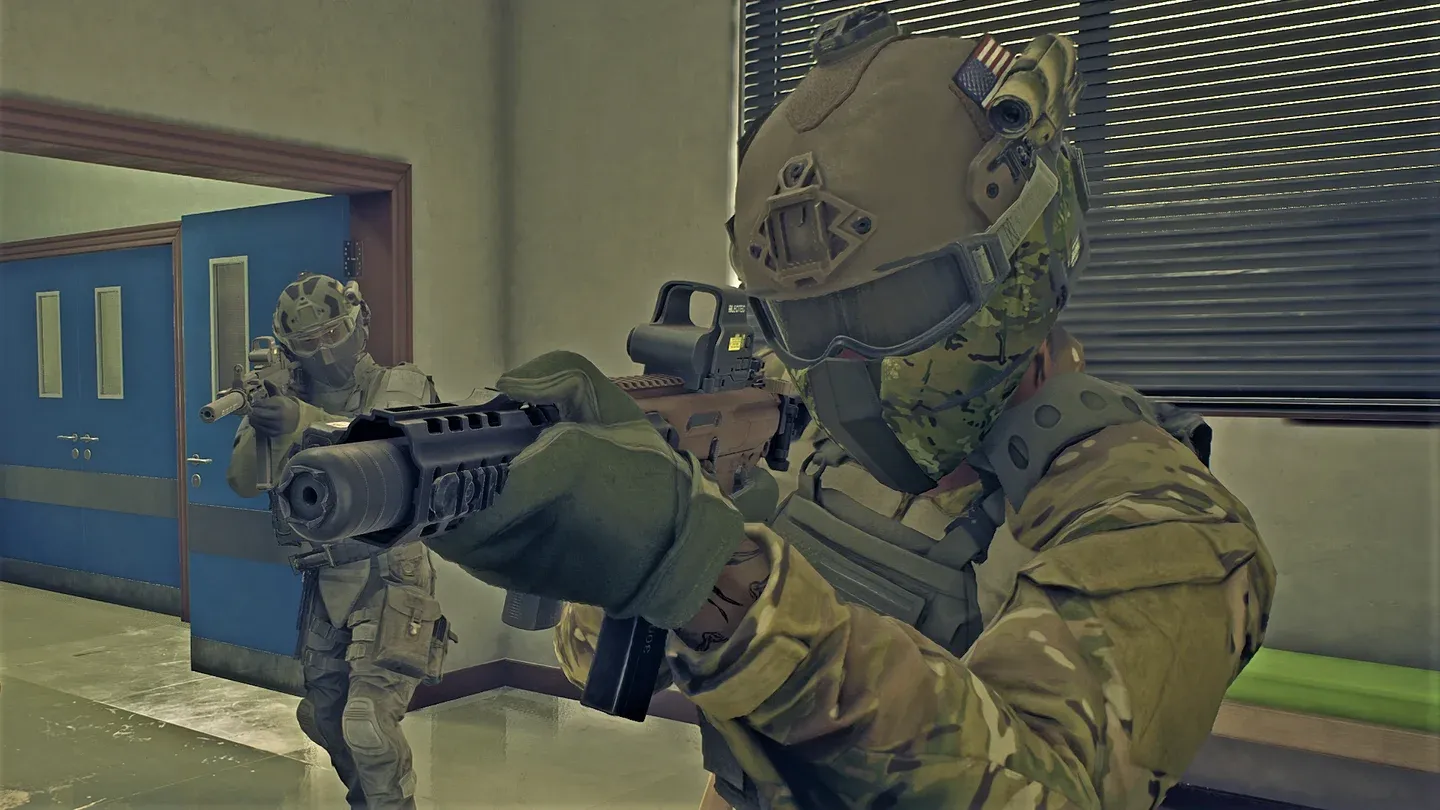 La granata 9-Bang e il gas CS appena aggiunti svolgono diversi ruoli tattici. Portali entrambi se il tuo equipaggiamento lo consente: 9-Bang per ripulire istantaneamente la stanza, CS Gas per negare l’area e soppressione prolungata.