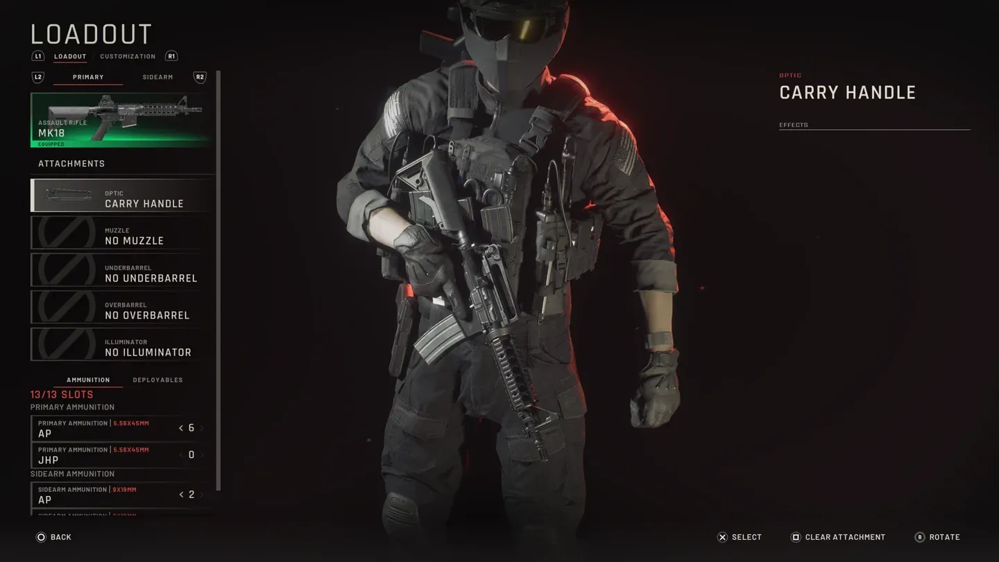 - La dotazione dell’equipaggiamento può essere modificata direttamente al momento del caricamento in una missione di gioco rapido o durante il riavvio di una missione.