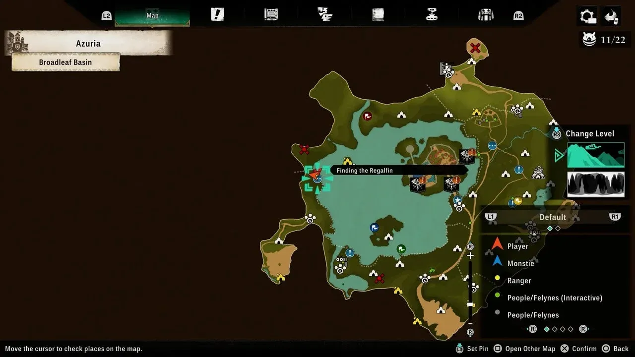 Dopo aver accettato la missione, su una grande isola nell’angolo sud-ovest del lago apparirà un indicatore di missione secondaria con un punto interrogativo blu. Ecco il problema che fa inciampare quasi ogni nuovo giocatore: il Regalfin non è seduto in cima all’isola dove si trova il segnalino. Si nasconde in una grotta sommersa sul lato nord-ovest dell’isola, accessibile solo nuotando.