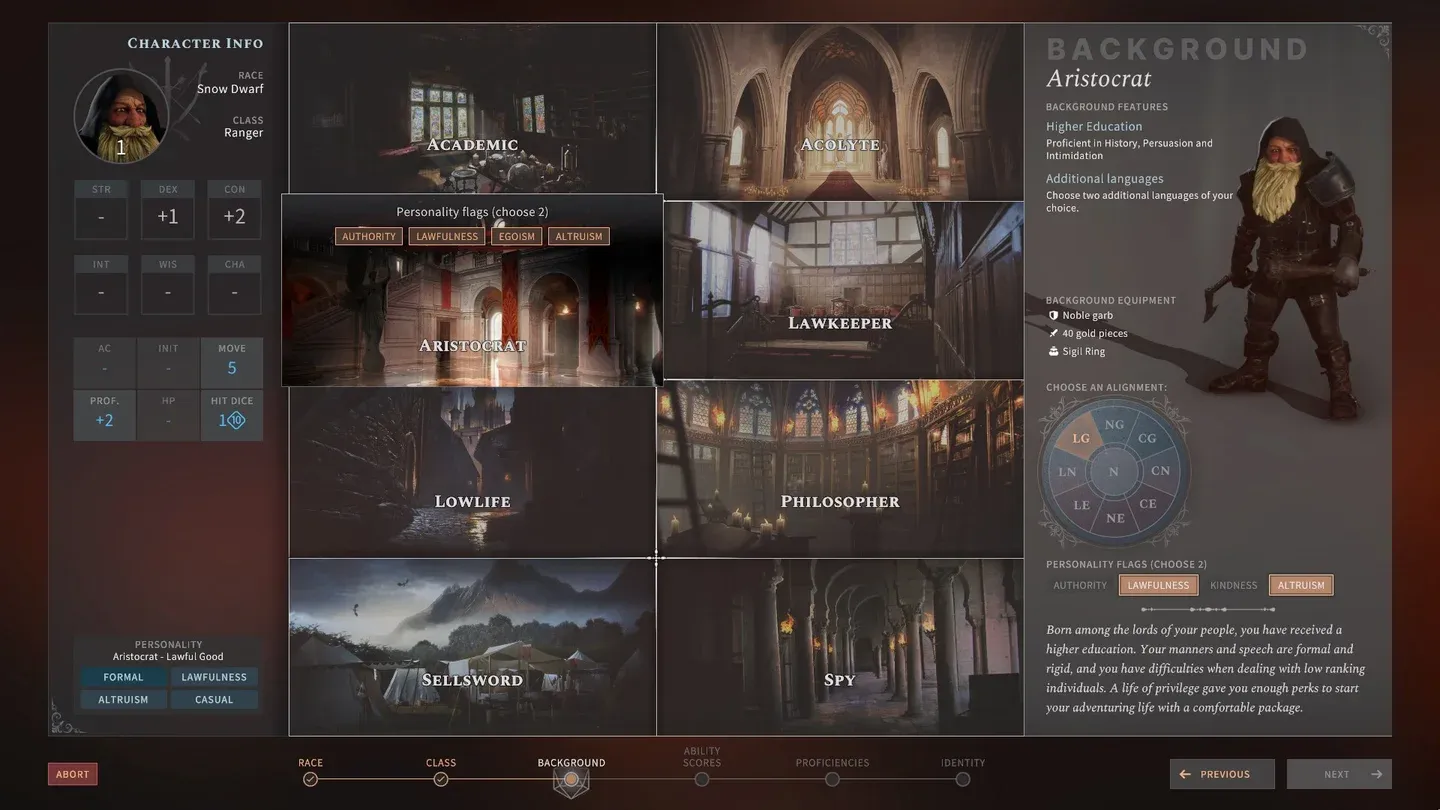 Gli sfondi in Solasta II sono molto più che semplici testi narrativi. Sbloccano controlli di dialogo specifici, garantiscono competenze nelle abilità e impostano la tua reputazione iniziale con le fazioni chiave della campagna. Scegliendo lo sfondo Accolito o Spia puoi bypassare interi incontri di combattimento iniziali aprendo rami di dialogo unici.