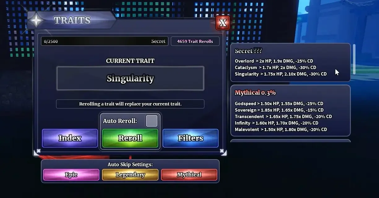 Ogni giocatore inizia come umano, il che fornisce zero bonus alle statistiche. La tua prima priorità dopo aver effettuato l’accesso dovrebbe essere quella di coltivare oggetti Race Reroll da mob e boss (i boss li rilasciano a una velocità significativamente più alta) e girare finché non ottieni qualcosa dal livello S o A.