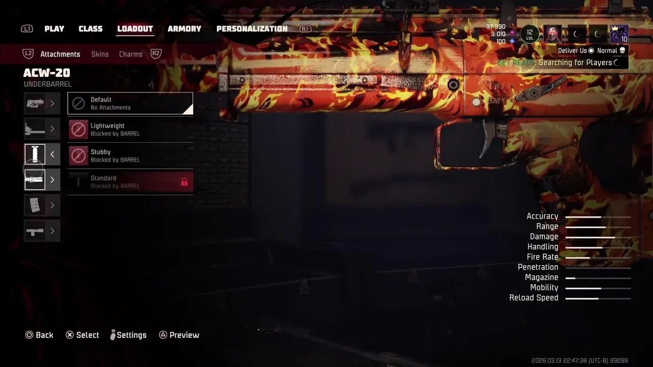 L’ACW-20 è l’arma primaria migliore per questa build. La sua capacità di eliminare le onde si abbina perfettamente al drone Lancer, permettendoti di gestire zombi e fiancheggiatori vaganti mentre il tuo drone si occupa di gruppi raggruppati. Ecco la configurazione consigliata per gli allegati:
