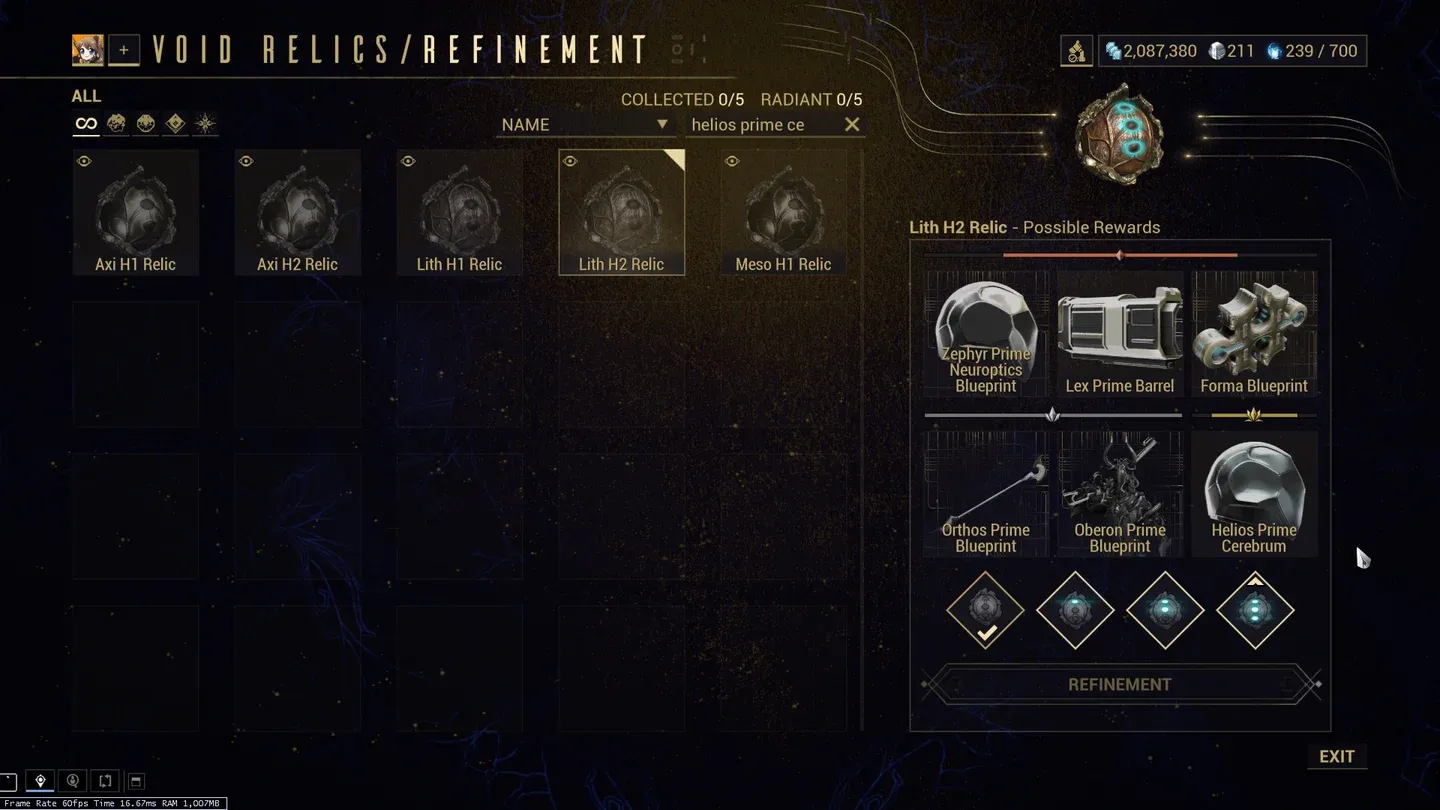 - Aggiorna le reliquie Neo e Axi a Radiant per parti rare. Usa Eccezionale o Perfetto per pezzi comuni e non comuni per conservare le Tracce del Vuoto.