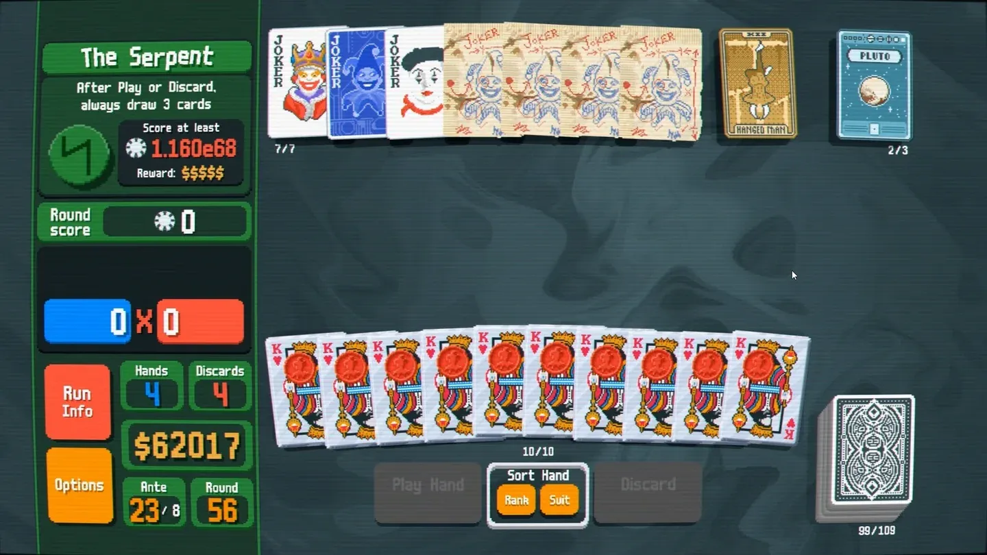 La selezione delle mani è ancora importante anche in una build NANEINF. Le coppie sono una scelta affidabile e coerente per attivare ripetutamente gli effetti delle carte tenute. Il Full, nonostante sembri potente, è ampiamente considerato una delle build più deboli del gioco perché richiede troppe carte specifiche e fornisce risultati incoerenti rispetto ai tipi di mano più semplici.