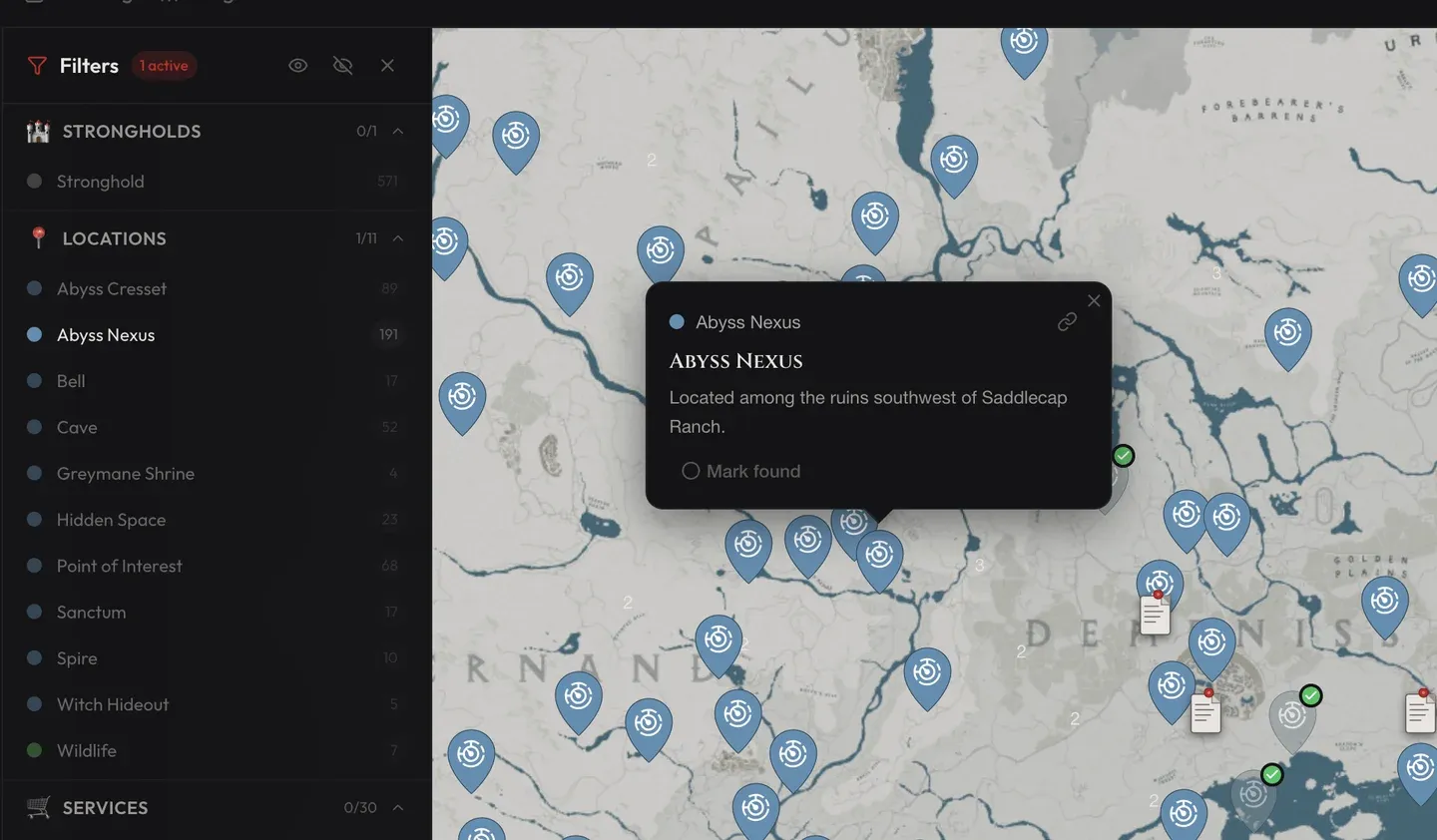 Situato a sud-ovest di Three Saints’ Falls, questo Nexus si trova alla base di una grande scogliera rocciosa, proprio accanto alla Grotta del Sussurro delle Ombre. La grotta ospita un NPC strega che ti aiuta a lavorare con i tuoi Abyss Gears, quindi avere un punto di teletrasporto qui ti dà un rapido accesso sia alla grotta che all’area circostante.