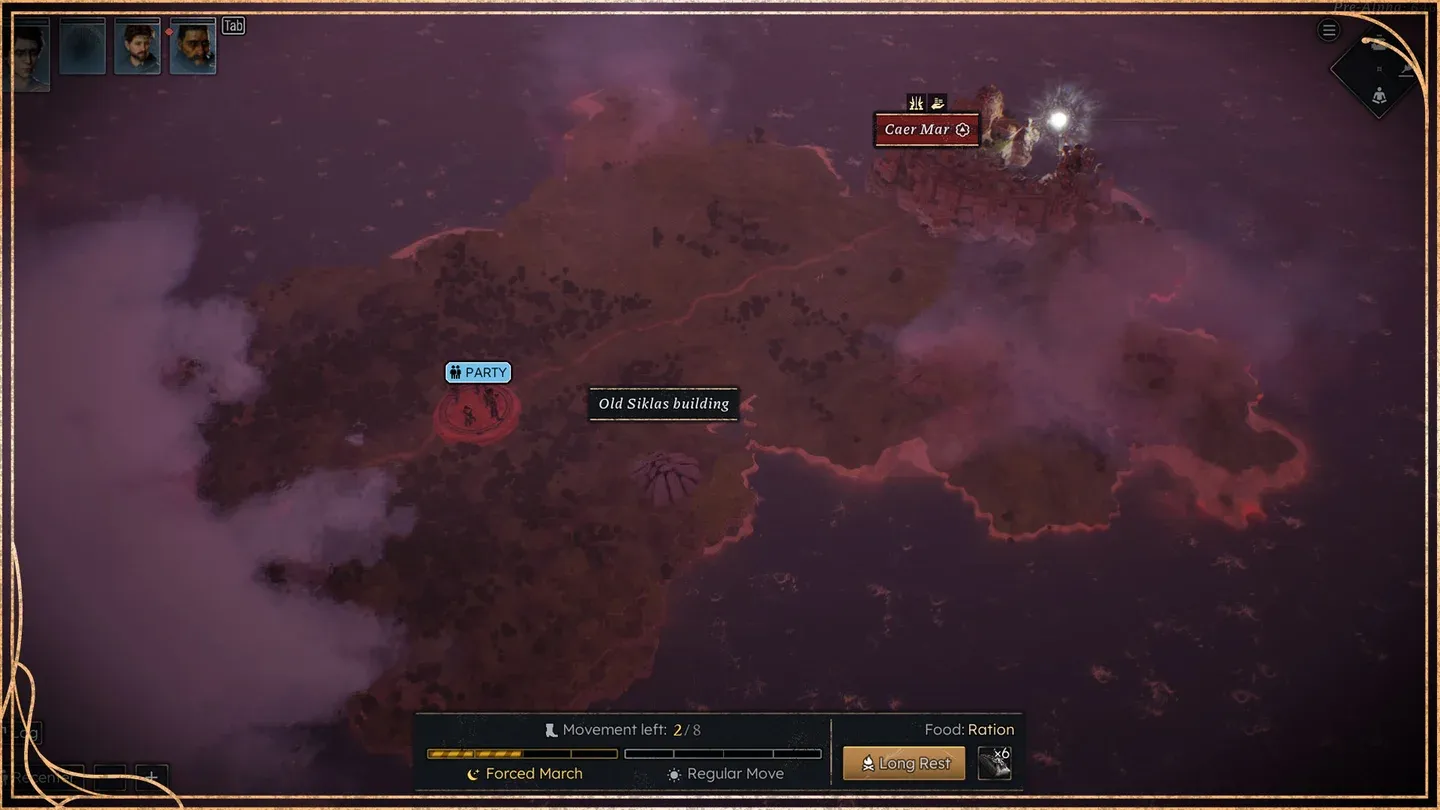 La mappa del mondo è passata da un sistema di viaggio piatto, punto a punto, a uno spazio completamente tridimensionale costruito su tessere esagonali. Ogni tessera rappresenta una regione in cui puoi entrare, attraversare o indagare. Secondo il post dello sviluppatore Dev Update n. 18, il team di Tactical Adventures ha progettato la mappa in modo che i giocatori possano viaggiare liberamente attraverso la sua griglia esagonale anziché seguire percorsi fissi.