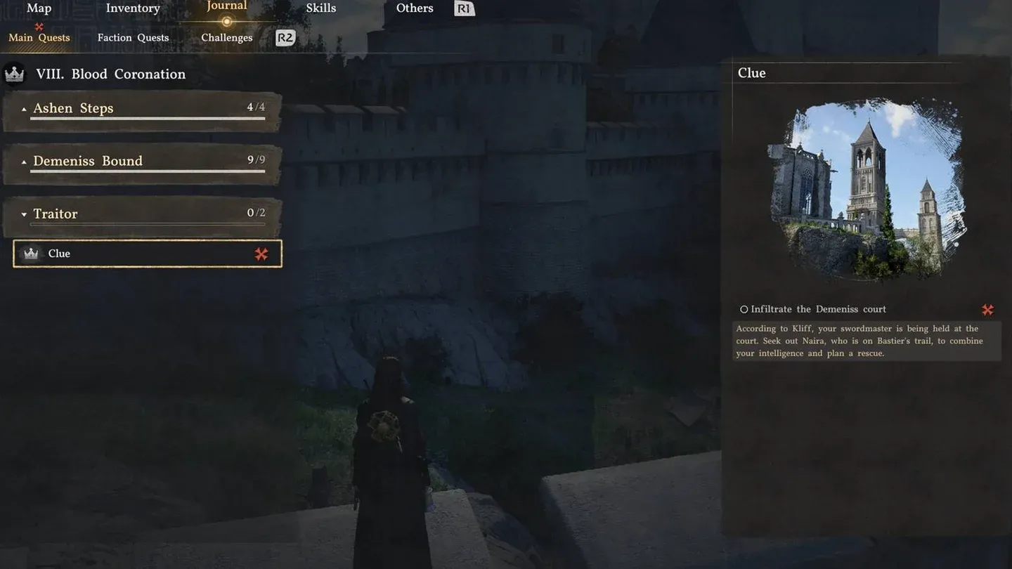 È qui che i giocatori vengono inciampati. Demeniss appare brevemente nel Capitolo 5, il che dà l’impressione che tu possa tuffarti direttamente nel contenuto secondario. Non puoi. La maggior parte delle missioni di fazione in questa regione richiedono che tu avanzi nella storia principale oltre la visita iniziale prima che diventino disponibili.