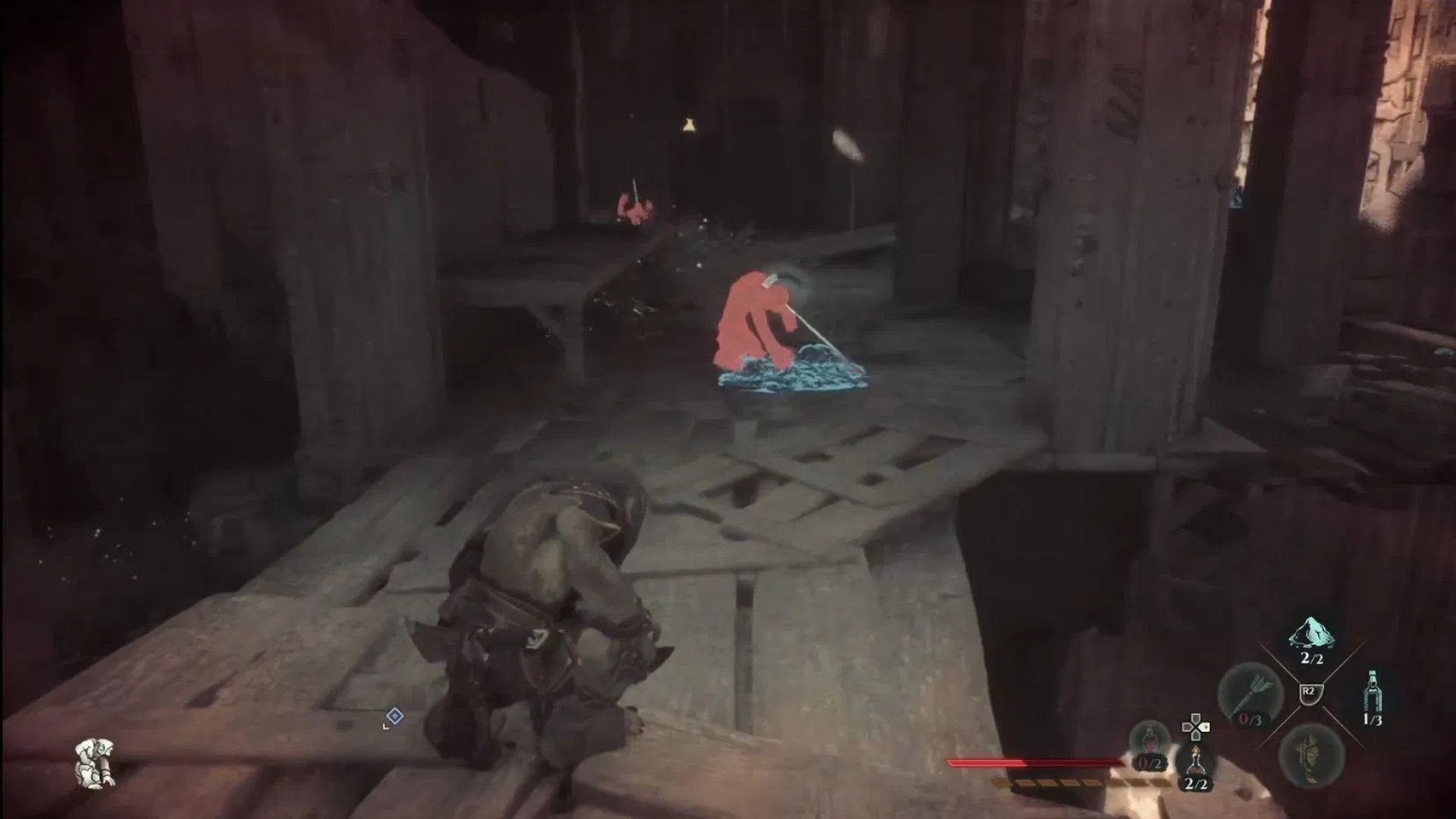 Goblin Vision non si limita a dipingere i nemici: disegna i loro coni visivi esatti e mostra la direzione in cui sono rivolti. Quella piccola freccia su ogni bagliore rosso è dorata. Cammina quando il cono punta lontano, immobilizzati quando oscilla verso di te. In queste mappe verticali dovrai arrampicarti molto su tubi e travi, quindi controlla il cono sopra e sotto prima di saltare.