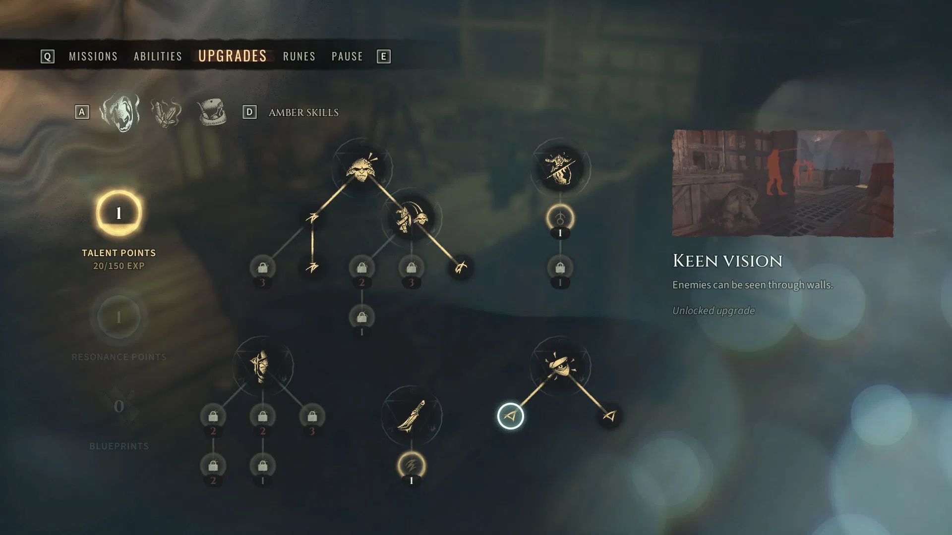 - Keen Vision (3 punti): I nemici brillano di rosso attraverso i muri. All’improvviso sai esattamente chi ti aspetta dietro ogni angolo.