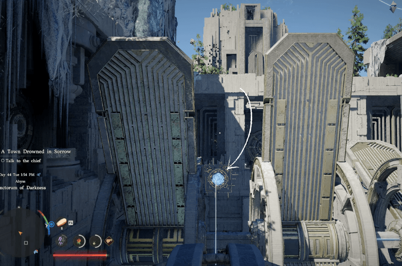 Una volta che sei lì, usa Palmo della Forza O Forza corrente premere il pulsante per ripristinare il Santuario dell’Abisso dell’Oscurità e poi vai sopra il pulsante e puoi rivendicare il Artefatto dell’Abisso.
