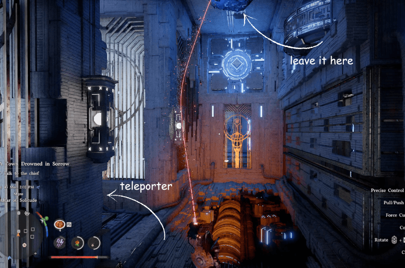 Quindi lascia l’energia chip al superiore vicino alla piattaforma rotante e utilizzare il teletrasporto che si trova nella piccola area per teletrasportarsi nell’area superiore.