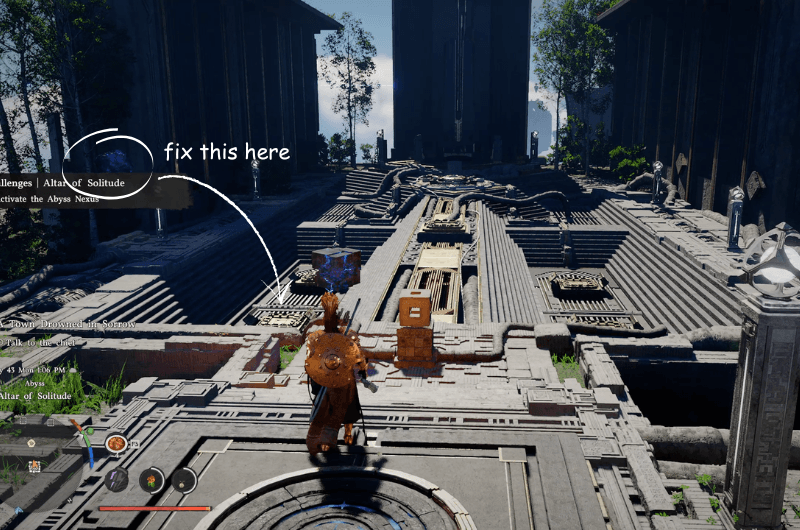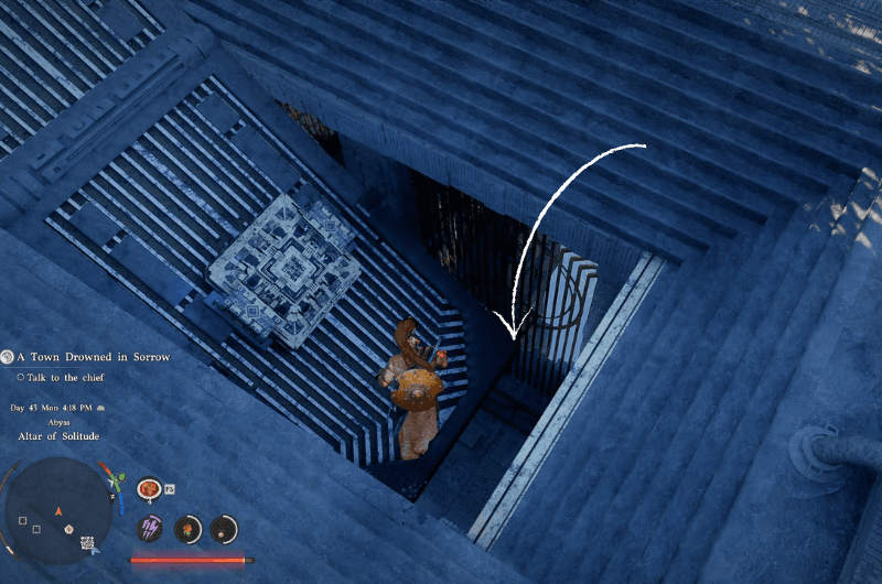 Utilizzo Palmo della Forza sul pulsante e ripristinerà il file Altare dell’Abisso della Solitudine e puoi rivendicare il Artefatto dell’Abisso.