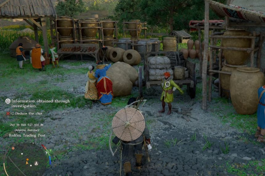 Dirigiti al Redfox Trading Post situato nel nord di Deleysia. Parla con Vascal, il manager del Redfox Trading Post, che ha bisogno di assistenza. Dopo aver parlato con lui, riceverai il Diario investigativo: Silenzio rotto. Controlla il tuo inventario, situato nella sezione Oggetti chiave, e leggi il registro prima di interrogare individualmente i cinque sospettati.