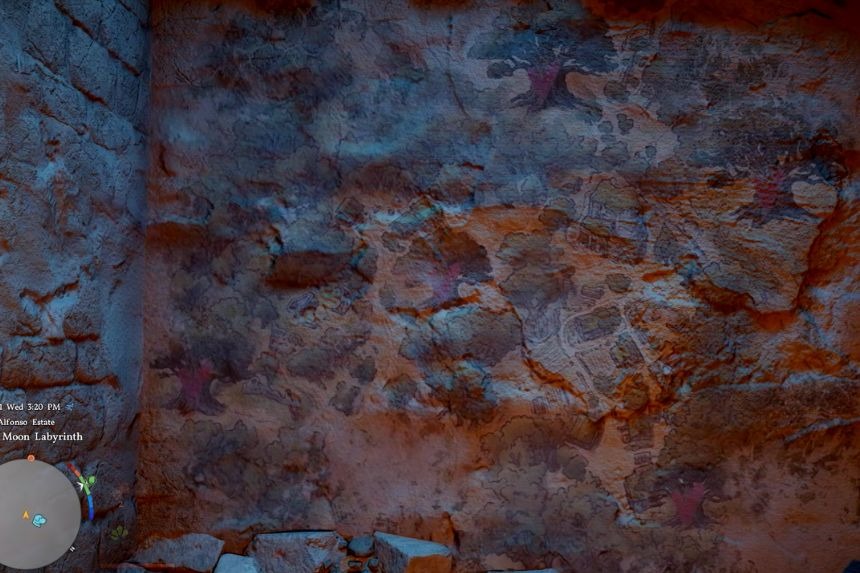 È facoltativo, ma all’interno del Labirinto della Luna Azzurra puoi cercare il murale. Il murale sarà il tuo primo indizio e ti mostrerà una mappa con la posizione degli alberi vicino al villaggio di Pororin. Usando il murale come guida, potrai andare alla periferia del villaggio di Pororin e trovare la posizione dei cinque alberi mostrati nel murale. Questi alberi avranno dei segni bianchi e ti parleranno dei simboli trovati nei pulsanti all’interno del Labirinto. Non è necessario trovare gli indizi per risolvere il puzzle.