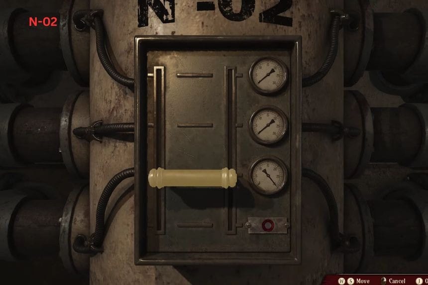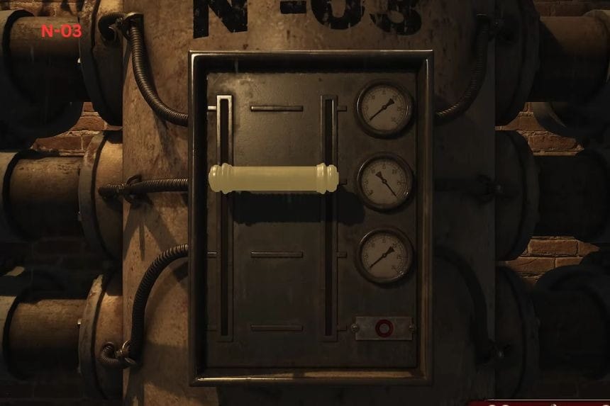 Entra nell’edificio contrassegnato con N-03, quindi gira a destra. Sali le scale e troverai il terminale della pompa N-03 in attesa in cima. Interagisci con esso e tira di nuovo la leva due volte.