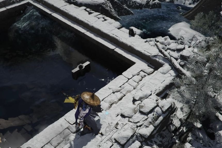 Una volta arrivato lì, il dispositivo puzzle sarà bloccato all’interno di un blocco di ghiaccio. Per prima cosa, accucciati e usa il Palmo della Forza per rompere il ghiaccio e rivelare il dispositivo all’interno. Successivamente, attiva la modalità Focus e prendi di mira il primo dispositivo puzzle con Nature’s Snare. Continua a soffiare aria nel dispositivo per un po’. Questo solleverà una piattaforma e scaricherà l’acqua fino a un certo livello. Dopo aver drenato l’acqua, un secondo dispositivo puzzle sarà visibile un po’ più in basso nell’area.
