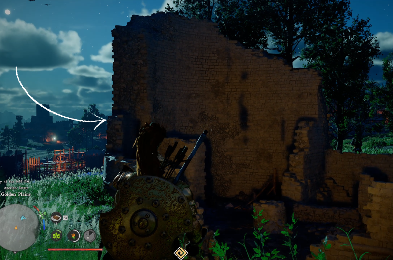 Potrai vedere a punto di interesse indicatore sulla mappa quando ti avvicini alla posizione delle rovine, devi solo andare verso il punto di interesse e dovresti essere in grado di vedere le antiche rovine in Tenuta azera, Pianure dorate.