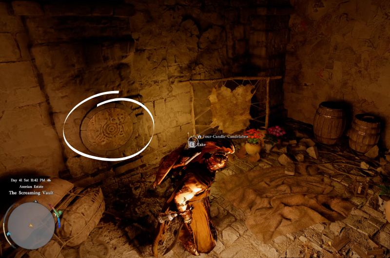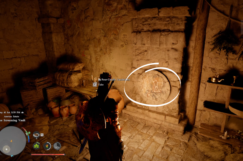 Se guardi il muri in una qualsiasi delle stanze, dovresti vedere una mappa con tre “X” punti marcati. Se guardi attentamente la mappa, saprai che è una mappa di Demeniss, il fattorie per essere precisi. Puoi trovare questi fattorie vicino alle lettere D E E sulla mappa. Una volta che sarai arrivato alle fattorie, dovrai cercare spaventapasseri vicino alle fattorie e su questi si troveranno gli indizi per i sigilli corpi di spaventapasseri.