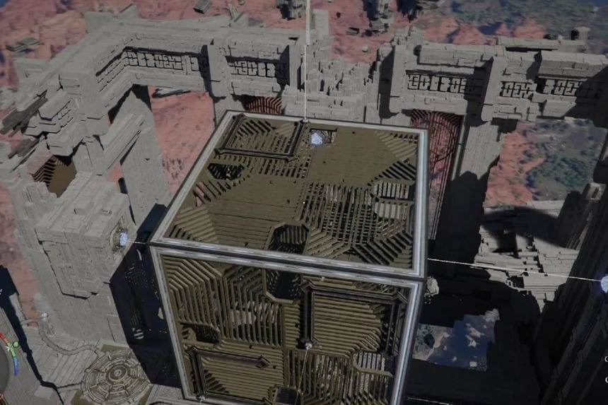 Una volta lì, girate a sinistra e avvicinatevi ad una piattaforma galleggiante in alto. Salta su di esso usando la planata e interagisci con l’interruttore su di esso usando la tua Axiom Force. Attiverà il puzzle del cubo e lo ruoterà.