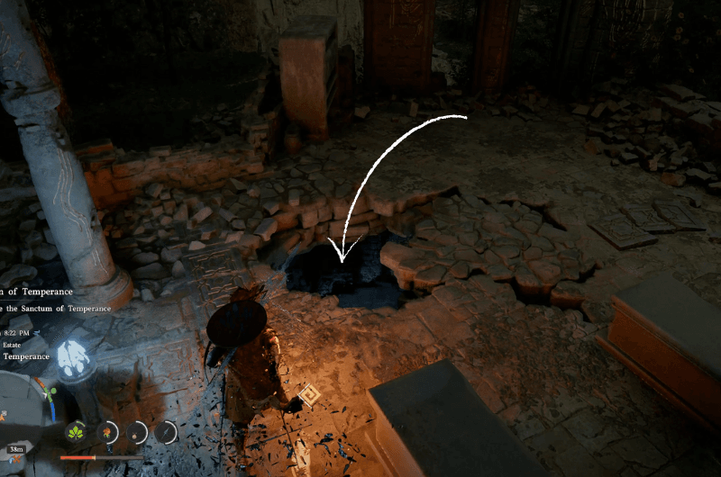 Girati dal santuario e vedrai un modo per arrivare dall’altra parte delle rovine come mostrato nell’immagine sopra. Andare Attraverso quello spazio e atterrerai in una stanza, ti vedrai fuori dalla stanza.