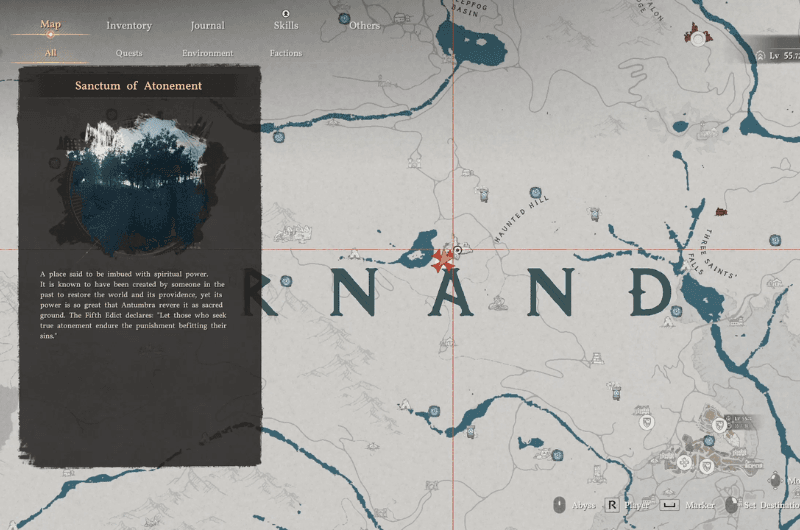 IL Santuario dell’Espiazione si trova appena sopra la lettera UN In Hernand sulla mappa come mostrato nell’immagine sopra. Il santuario è occupato dalla fazione nemica, dovresti farlo tu liberare il sancta sanctorum prima di procedere con quello del sancta sanctorum pulizia.