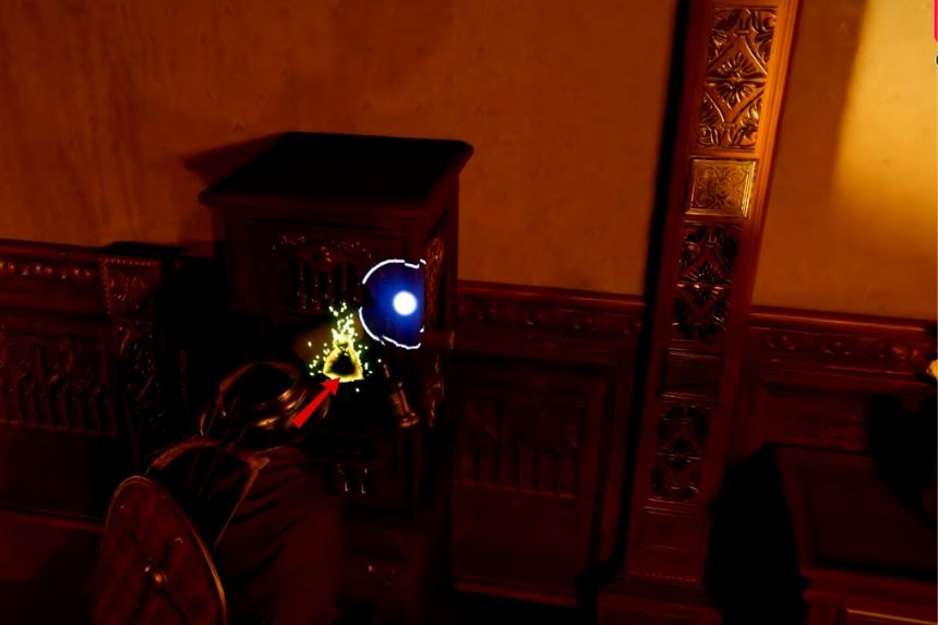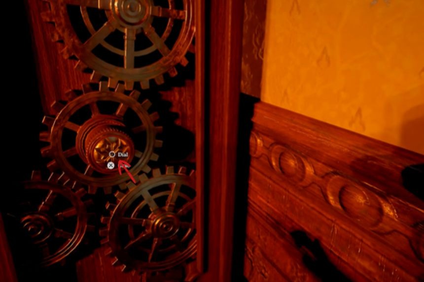 Dovrai iniziare dal castello di Hernand. Entra nell’edificio principale, prendi le scale a sinistra e sali fino a raggiungere una porta sulla sinistra. Usa una chiave per aprire la porta, entra e troverai la cassaforte (dispositivo di riproduzione) all’interno della stanza. Esaminare attentamente il dispositivo; troverai alcuni quadranti sul retro. Ruotare il secondo quadrante in senso orario finché i quadranti non iniziano a muoversi insieme.