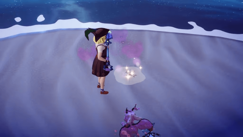 Ora passiamo all’evento principale. Passa alla tua pala reale e inizia a cercare punti di scavo scintillanti in tutta l’isola. Devi scavare esattamente 5 pezzi di Glowing Algae e tutti e cinque i punti si trovano nella sezione costiera di Moontide Island.