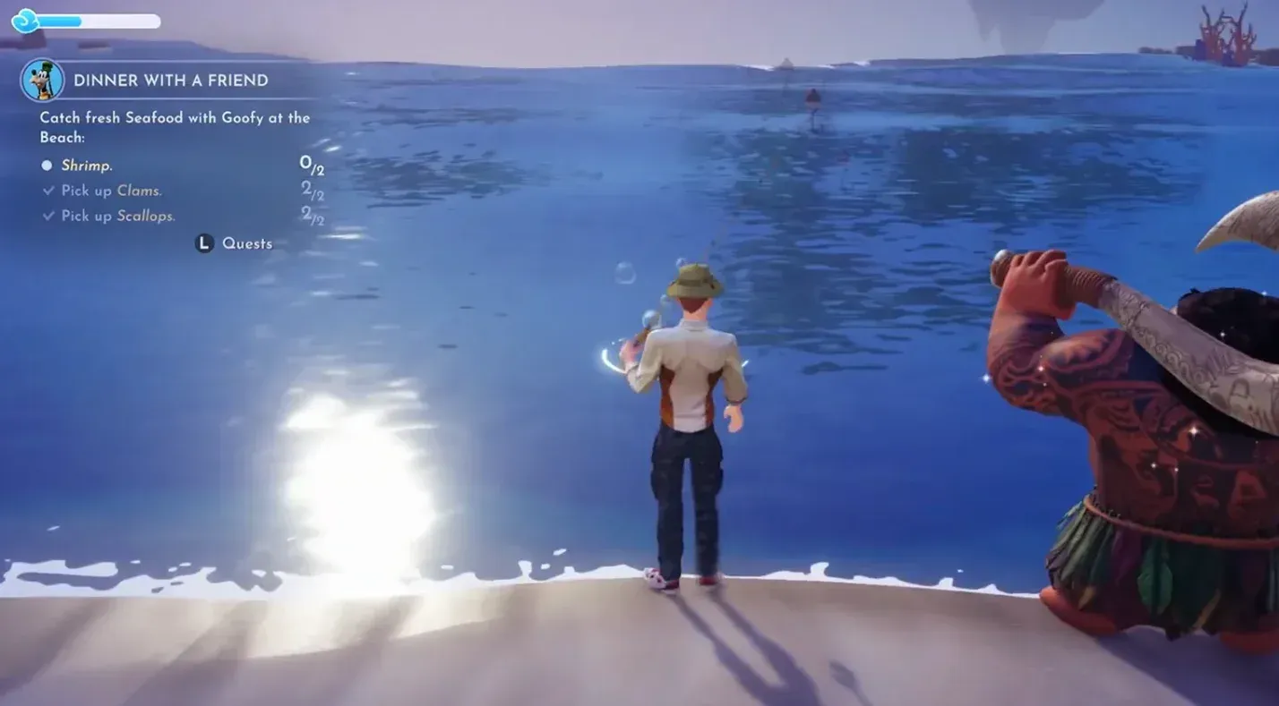 Secondo Game Rant, puoi pescare specificamente le increspature blu su Dazzle Beach per i gamberetti e fuori dalle increspature per le alghe. Riporta entrambi a Pocahontas prima di proseguire.
