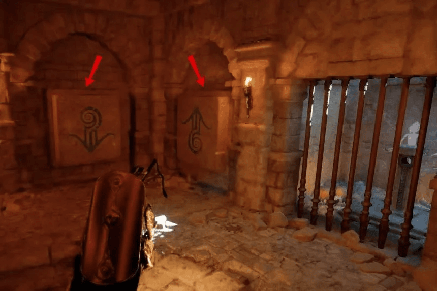 Scendete le scale per entrare nel sotterraneo. All’interno vedrai bersagli su entrambi i lati. Avanza con attenzione e, una volta superata la sezione difficile, vai avanti e apri la porta della gabbia. Ora raggiungerai il puzzle principale. Ecco l’ordine che devi seguire: