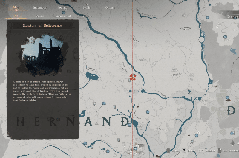 Dirigiti verso la posizione contrassegnata che si trova in settentrionale parte di Hernand vicino al Cresta di Stormtalon come mostrato nell’immagine sopra. Il santuario è occupato da una fazione nemica, L’Ordine di Antumbra. Dovresti farlo liberare il sancta sanctorum prima di procedere alla purificazione del sancta sanctorum.