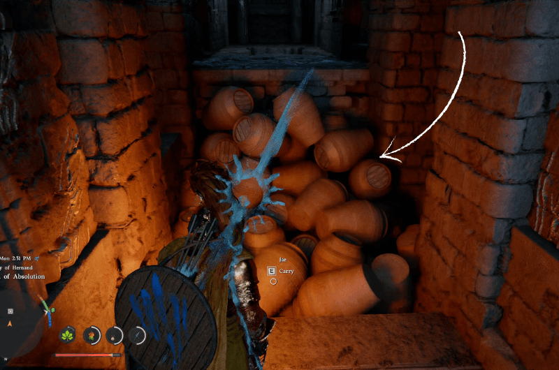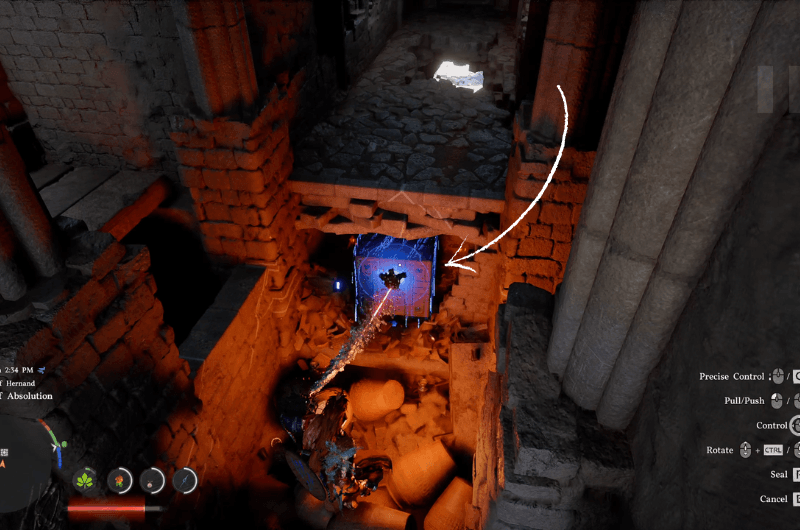 Rottura i vasi usando la tua arma e sarai in grado di vedere la cella energetica nascosta sotto la piattaforma dietro i vasi. Sigillalo usando il tuo pentolapuoi farlo utilizzando il file catena dell’abisso sulla cella di alimentazione e ti verrà presentata un’opzione di sigillo.