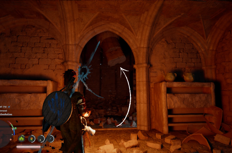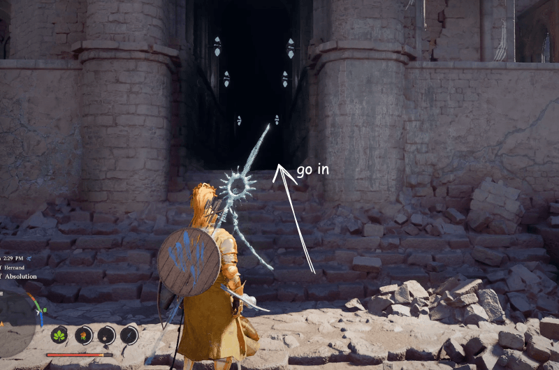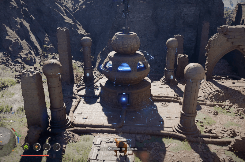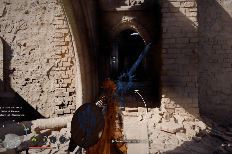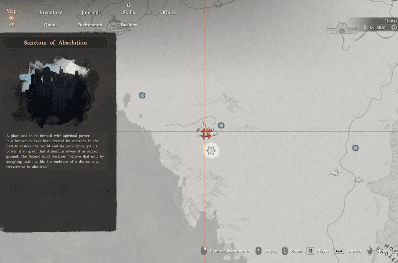 Dirigiti verso la posizione sopra segnata sulla mappa come mostrato nell’immagine sopra che si trova a sud Istituto Scholastone e raggiungerai il Santuario dell’Assoluzione. Per purificare il santuario devi liberarlo dai nemici che lo occupano e sconfiggere anche la spada di Antumbra.
