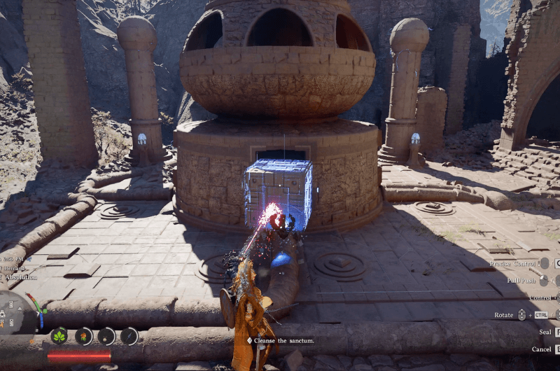 È relativamente facile e, come risolvere altri santuari, dobbiamo trovare i dispersi nuclei del sancta sanctorum e in questo caso abbiamo bisogno due di loro. Uno di questi è a cella di potenza che sembra un cubo e l’altro è a nocciolo del reattore che assomiglia alla testa del pilastro mancante.