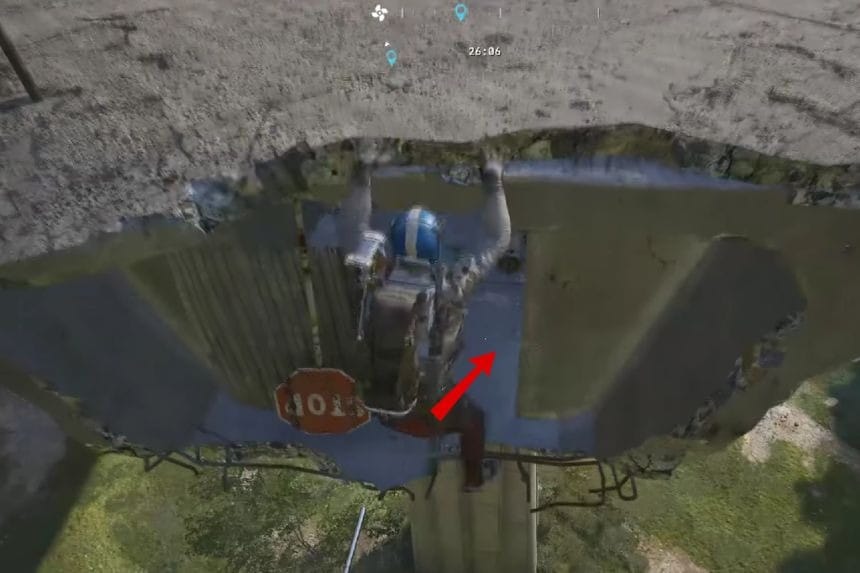 Vai al confine meridionale della Radura Barren e cerca l’autostrada rotta. Una volta raggiunta l’autostrada dissestata, sali sulla strada danneggiata. Prosegui fino in cima e continua a camminare fino a raggiungere la fine dell’autostrada.