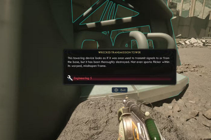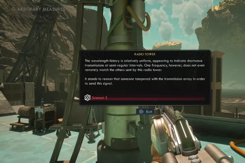 Questa torre si trova in cima a un edificio vicino: dovrai salire per raggiungerla. Interagisci per analizzarlo (richiede il livello Scienza 5).
