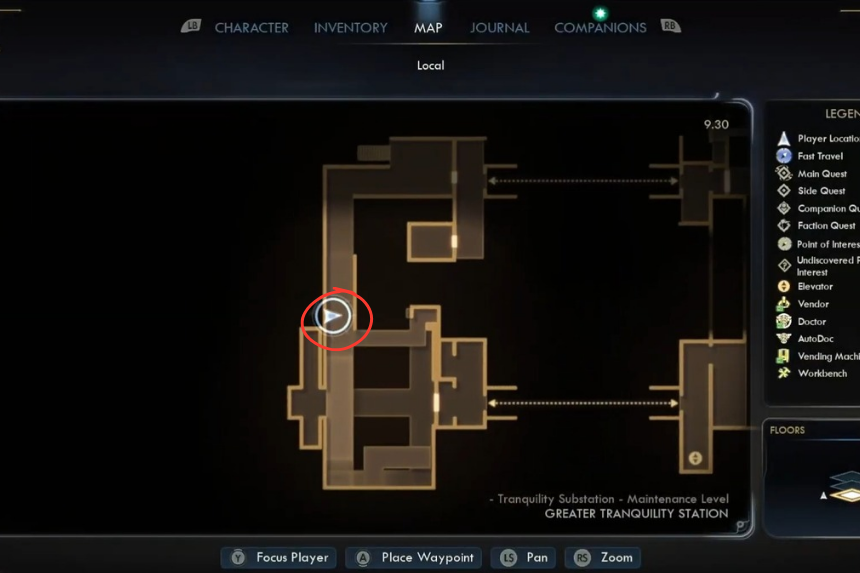 Per ottenere la chiave di manutenzione, prendi il percorso a sinistra dalla posizione mostrata nell’immagine della mappa sopra e prosegui finché non incontri uno sfiato in basso a destra. Entra e vedrai che conduce ad una specie di stanza con una scala al centro. Salite la scala e verrete condotti in un’area con un grande ventilatore, in basso a sinistra troverete una piccola apertura che conduce ad una stanza. Entra e troverai un cadavere da cui potrai saccheggiare la chiave per l’area di manutenzione della Stazione della Maggiore Tranquillità e anche una Corazza dello Studioso. Una volta ottenuto l’accesso, torna alla stazione e sbloccala.