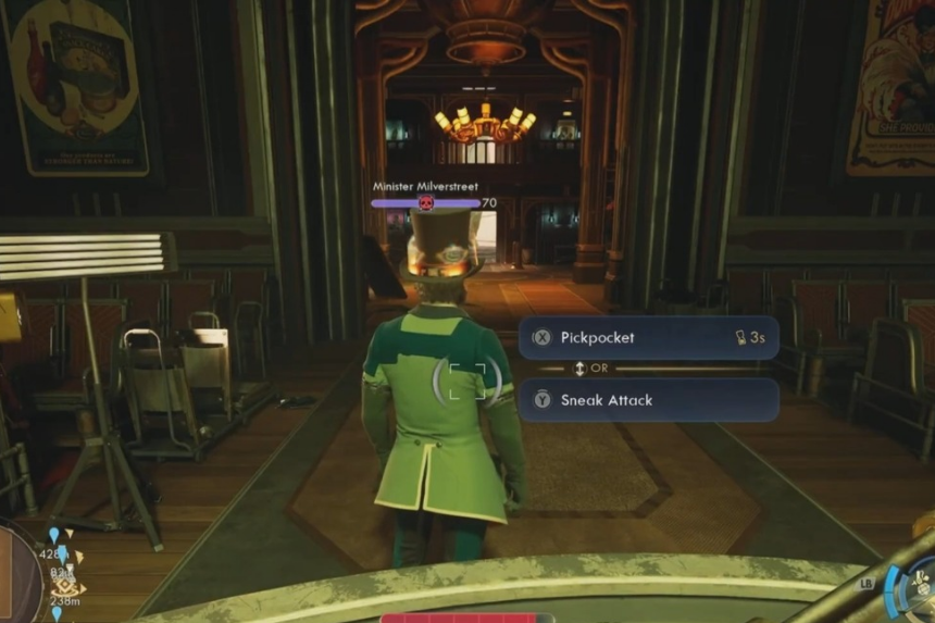 Per ottenere la chiave, torna verso l’edificio centrale di Fairfield, questo è lo stesso edificio associato alla tua missione principale, all’inizio del gioco. All’interno incontrerai il ministro Milverstreet e l’agente Kaur durante la storia. Dopo aver completato la conversazione iniziale con loro, dovrai passare alla parte subdola. Con attenzione, quando uno di loro avrà voltato le spalle, dovrai borseggiarlo per prendere la chiave.