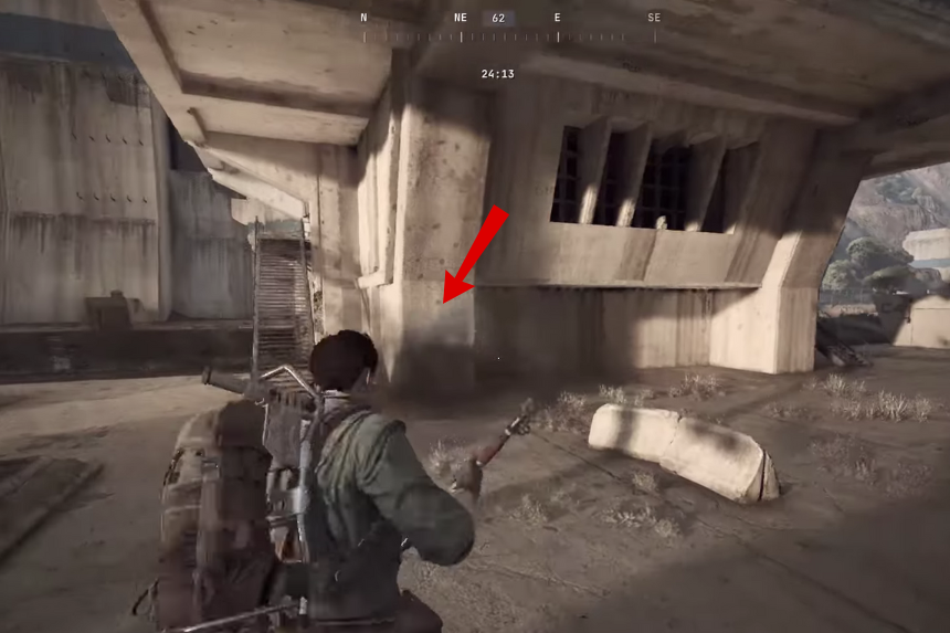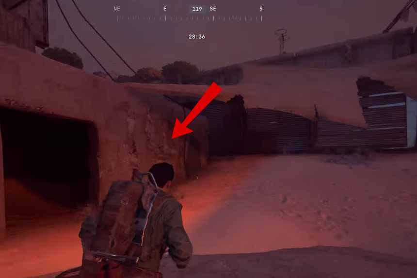 Fai attenzione qui, questa zona è solitamente pattugliata da droni, quindi stai attento mentre ti avvicini. Una volta che è al sicuro, interagisci con il muro della torre per contrassegnarlo.