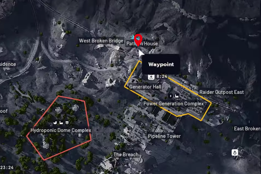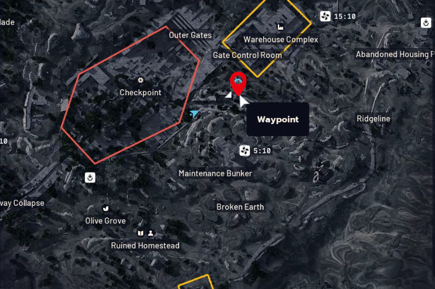 La missione “Back on Top” ti porta attraverso diversi campi di battaglia per contrassegnare punti di riferimento specifici. Inizia dal Dam Battlegrounds, dove dovrai contrassegnare la Pattern House. Una volta fatto, dirigiti al Cancello Blu e cerca la torre di vedetta bianca appena a sud del Complesso del Magazzino. Segnatelo dopo.
