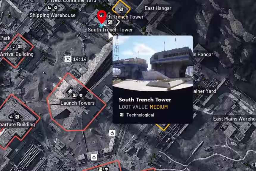 Infine, vai alla mappa dello spazioporto. Il tuo ultimo obiettivo è la Torre della Trincea Sud. Una volta arrivato, interagisci semplicemente con il muro per completare la marcatura finale.