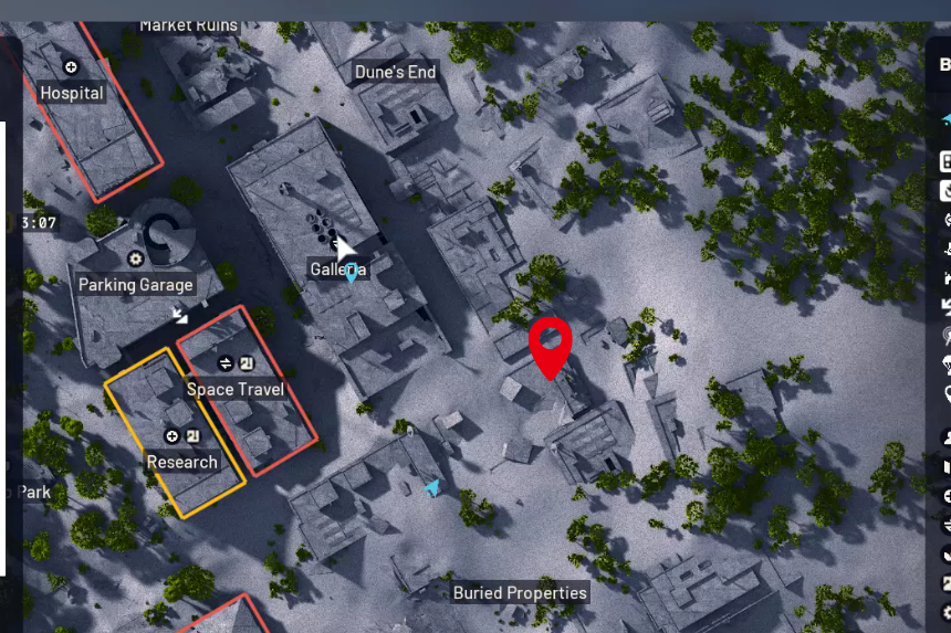 Inizia dalla città sepolta: dirigiti verso la parte nord-orientale della mappa, all’interno dell’area delle proprietà sepolte.
